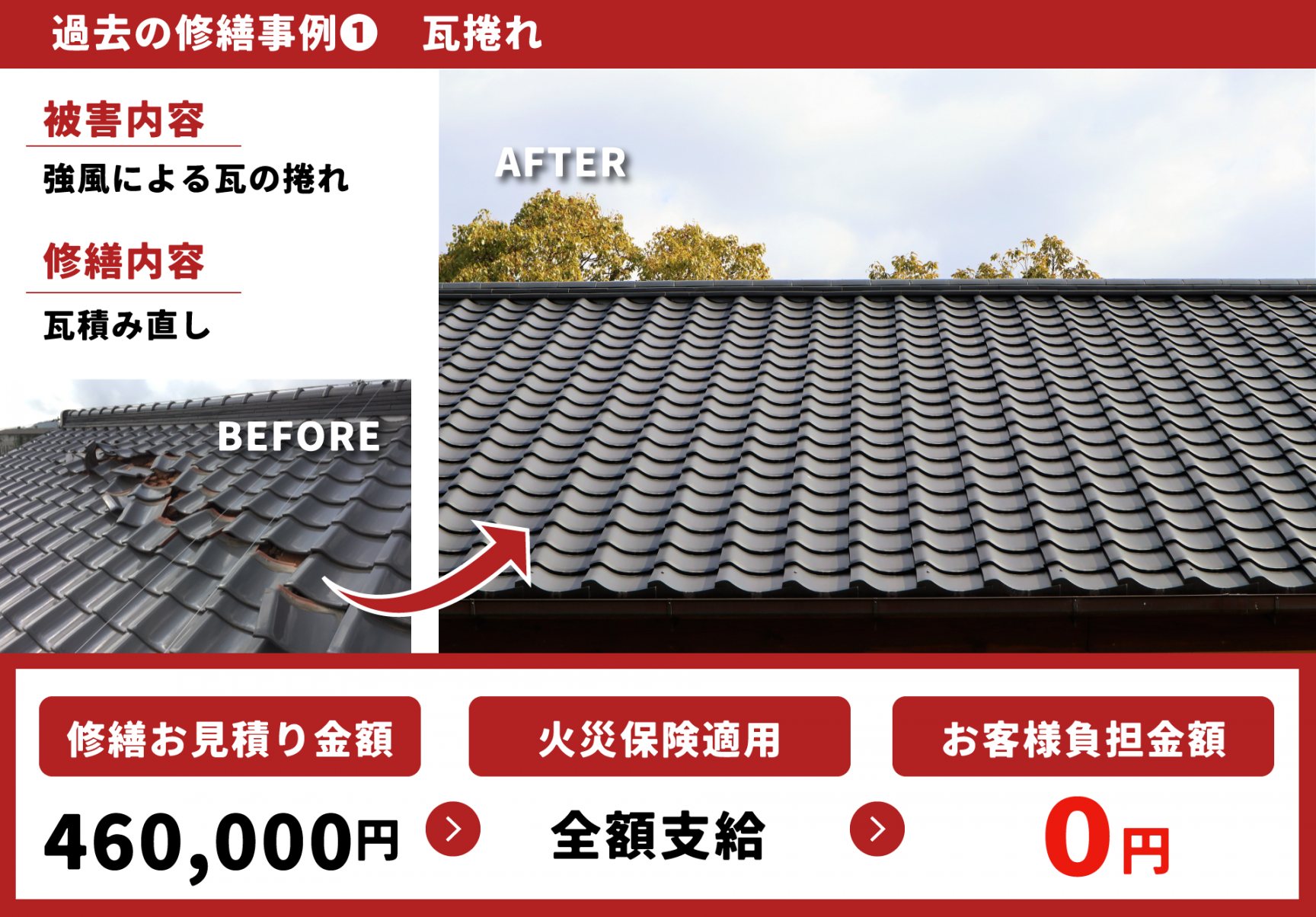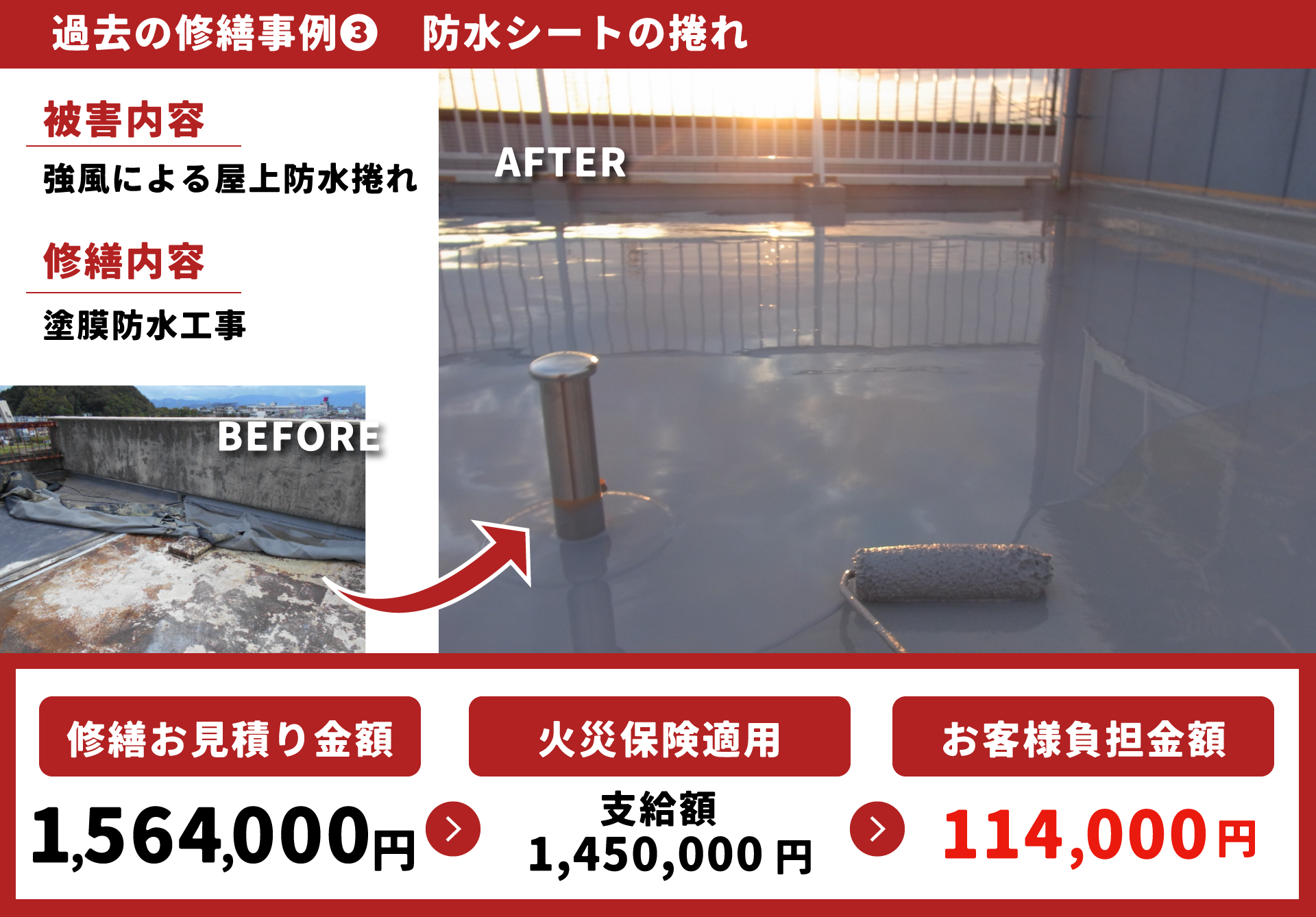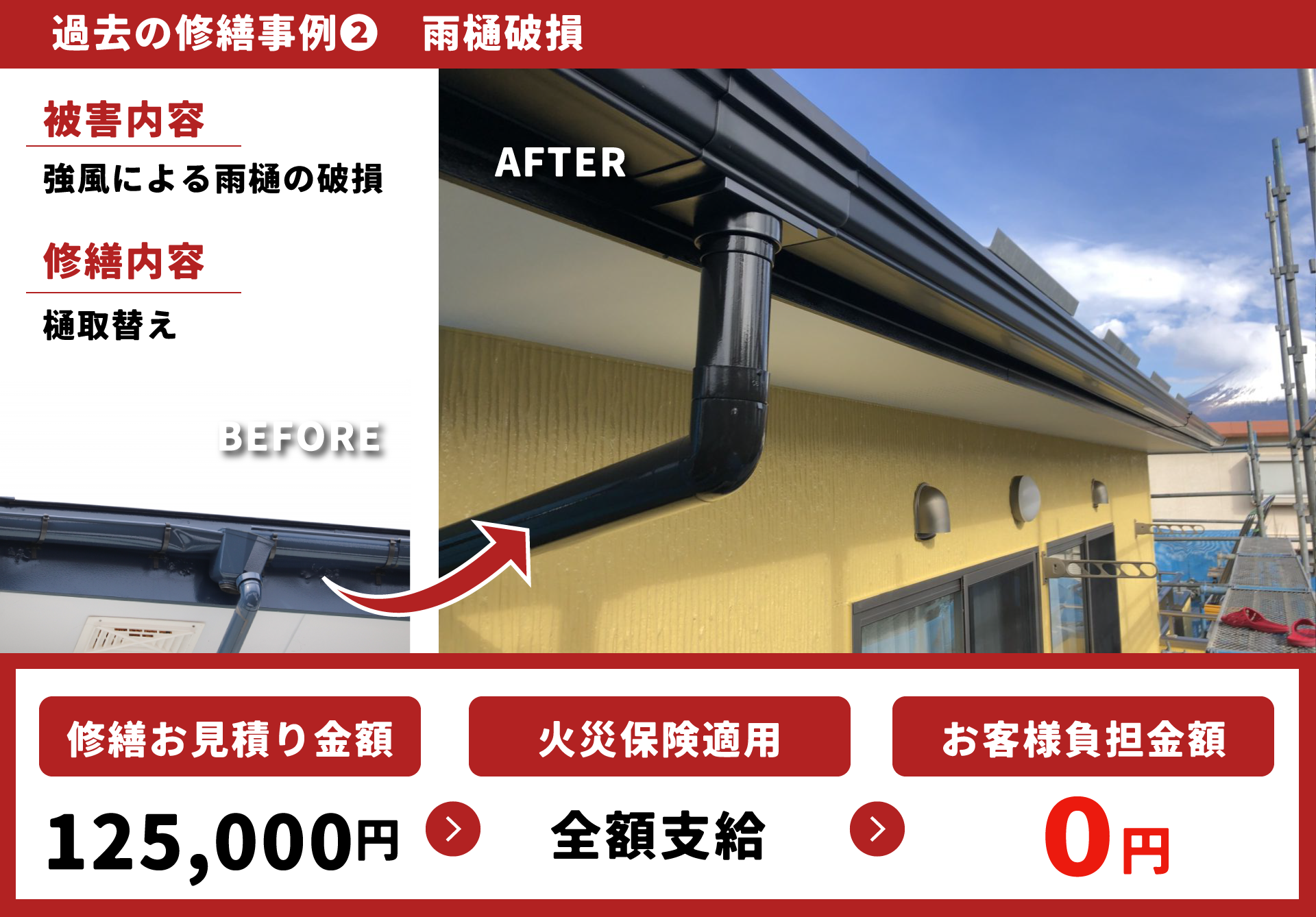 A、被害発生から3年前までの自然災害の被害であれば、被害箇所の保険申請が可能です。しかし、修繕にかかる費用が全額支給されない場合もありますので、ご了承くださいませ。
