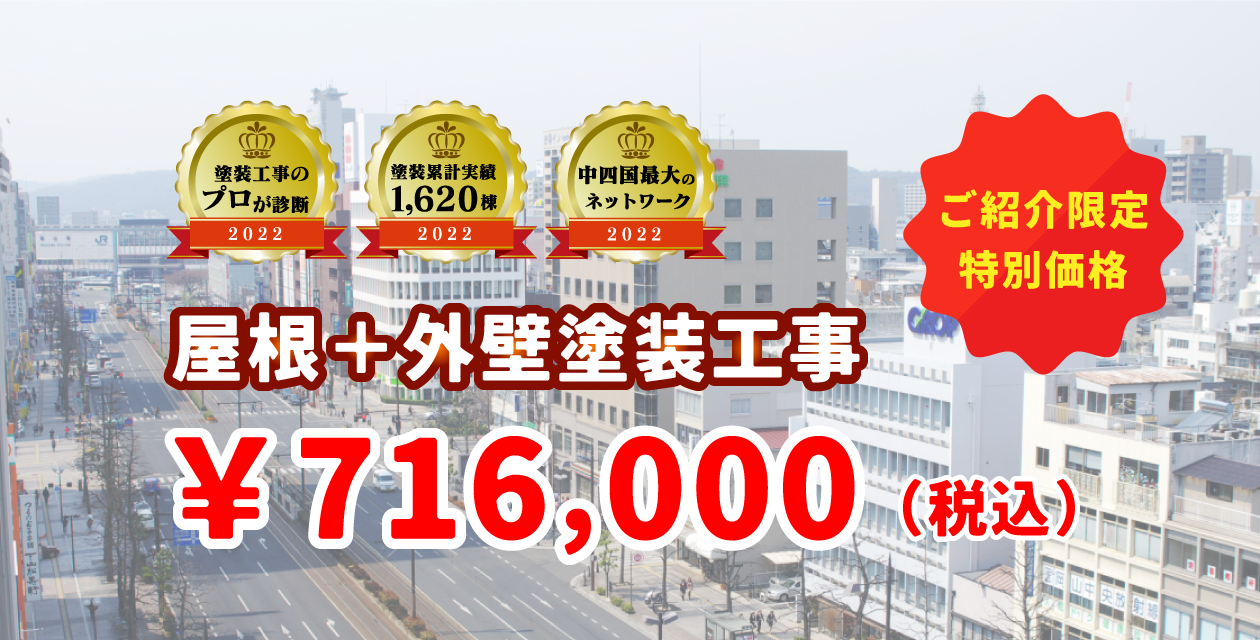 屋根・外壁塗装は下塗りと合わせて3回塗りとなります。一般的な外壁面積120㎡(2階建て)での価格で表示しておりますので、120㎡以上の建物に関しましては、別途お見積りをさせていただきます。ご了承下さいませ。