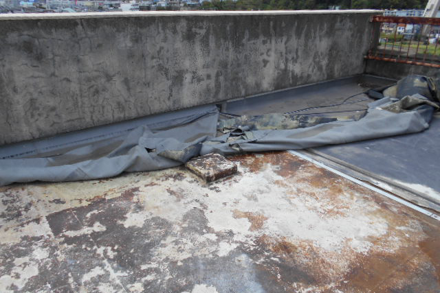1.屋上の防水シートが劣化と強風で剥がれていました。
